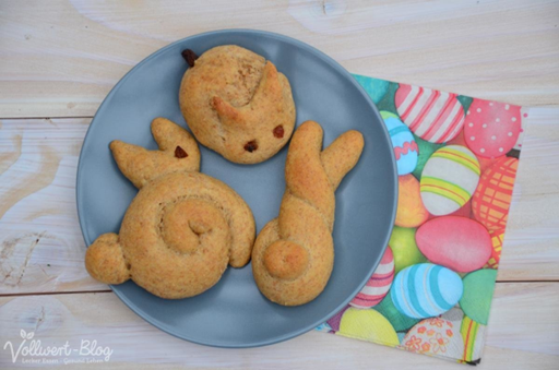 - Den Teig noch einmal gut durchkneten und nach den Anleitungen (siehe Rezept-Anmerkungen) die Osterhasen formen.
